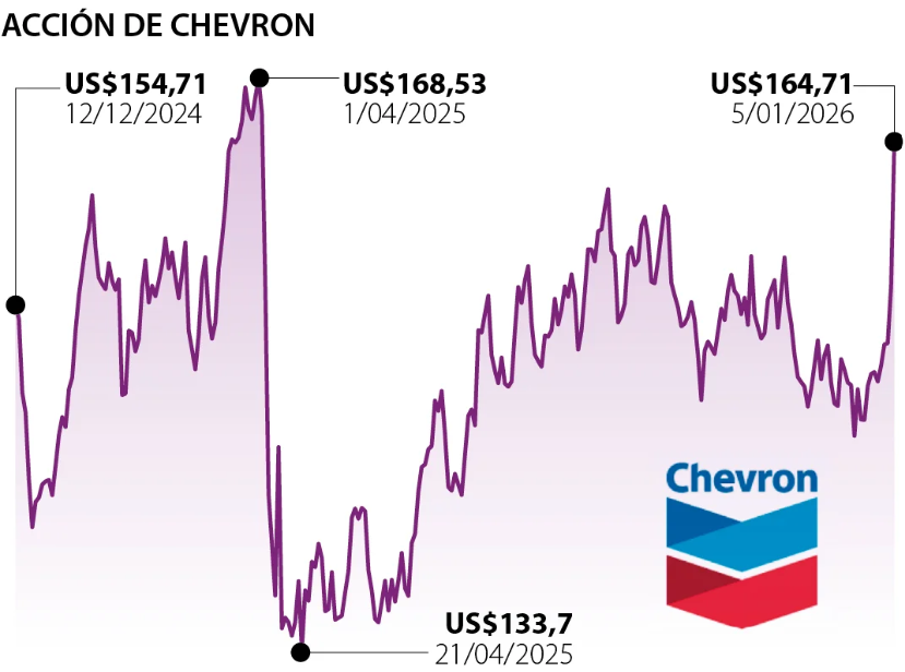- Acciones del sector energético mostraron avances moderados, especialmente empresas con potencial exposición indirecta a una eventual recuperación venezolana. Firmas como Chevron, Exxon Mobil o empresas de servicios petroleros experimentaron incrementos notables en Bolsa tras el anuncio de Estados Unidos de facilitar la participación de compañías energéticas en la reconstrucción del sector.