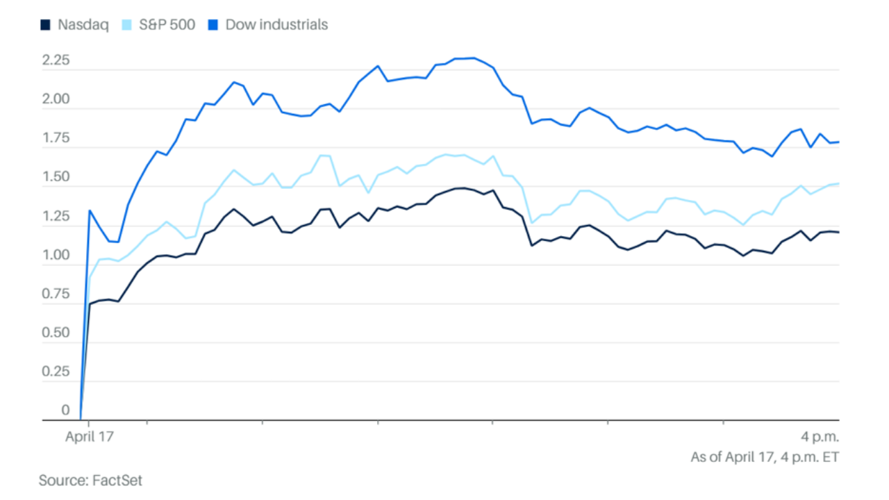 - Dow Jones: +1.8% (≈869 puntos), prácticamente saliendo del territorio de corrección.
