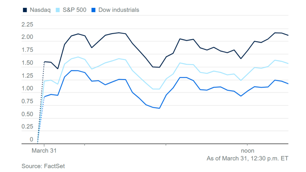 - El martes 31 llegó con señales de alivio: reportes de que Trump podría dar por terminada la operación militar sin exigir la reapertura total del Estrecho de Ormuz impulsaron un rebote intradiario con el Nasdaq subiendo +2.08%, el S&P 500 +1.64% y el Dow Jones +1.39%, aunque los daños del mes ya están hechos.