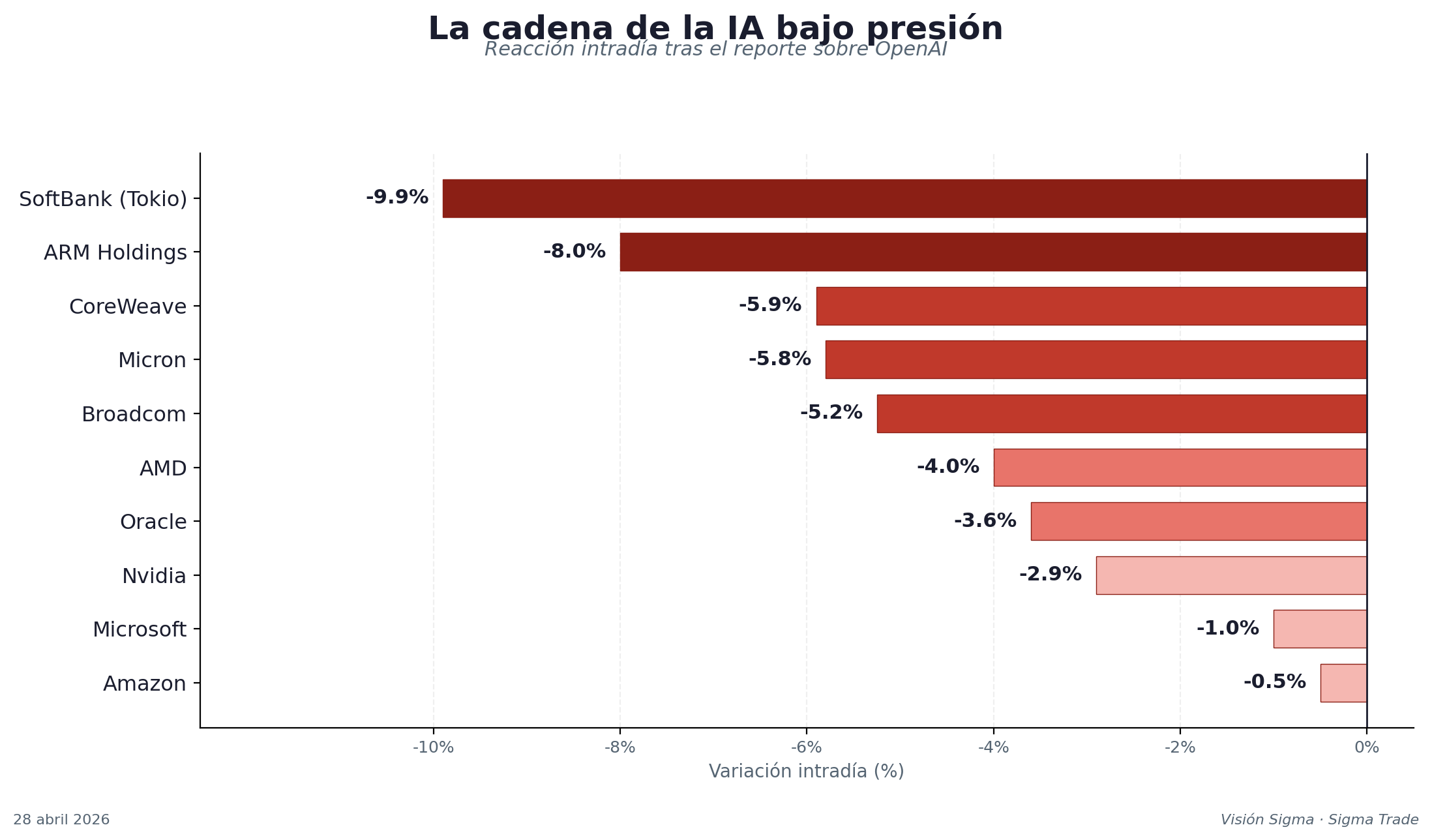 Lo que vimos hoy no es solo una jornada negativa. Es la primera fisura visible en la narrativa que ha sostenido el rally del último año y medio: que la inversión masiva en IA producirá retornos proporcionales y que el ecosistema circular —donde todos invierten en todos— es autosostenible.